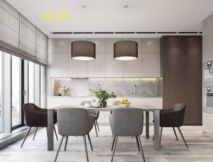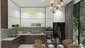 Sản phẩm thi công gần giống với thiết kế, thay đổi theo kích thước và màu sắc theo không gian bếp và yêu cầu của khách hàng.